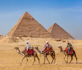 Visit the legendary Pyramids of Giza and stand before these monumental structures that have captivated the world for centuries. Admire the Great Pyramid, the pyramids of Khafre and Menkaure, and encounter the majestic Great Sphinx. (Entrance inside the pyramids is not included.)