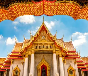 Upon arrival in Bangkok, you will be picked up and embark on a city and temple tour, including entrance to the iconic Golden Buddha and Marble Buddha Temple. After the tour, check in to your hotel and enjoy a free evening to relax or explore at your own pace. Overnight stay in Bangkok.