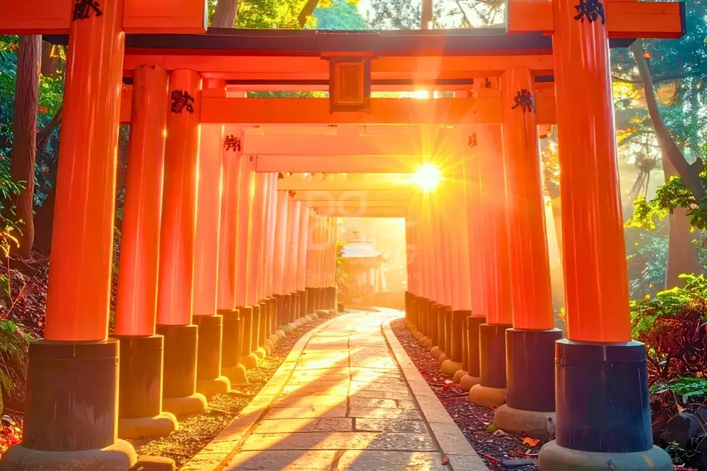 Explore Fushimi Inari Shrine, famous for its thousands of vibrant red torii gates that create a stunning pathway up the mountain. Walk through the shrine's grounds and the torii gate trails.