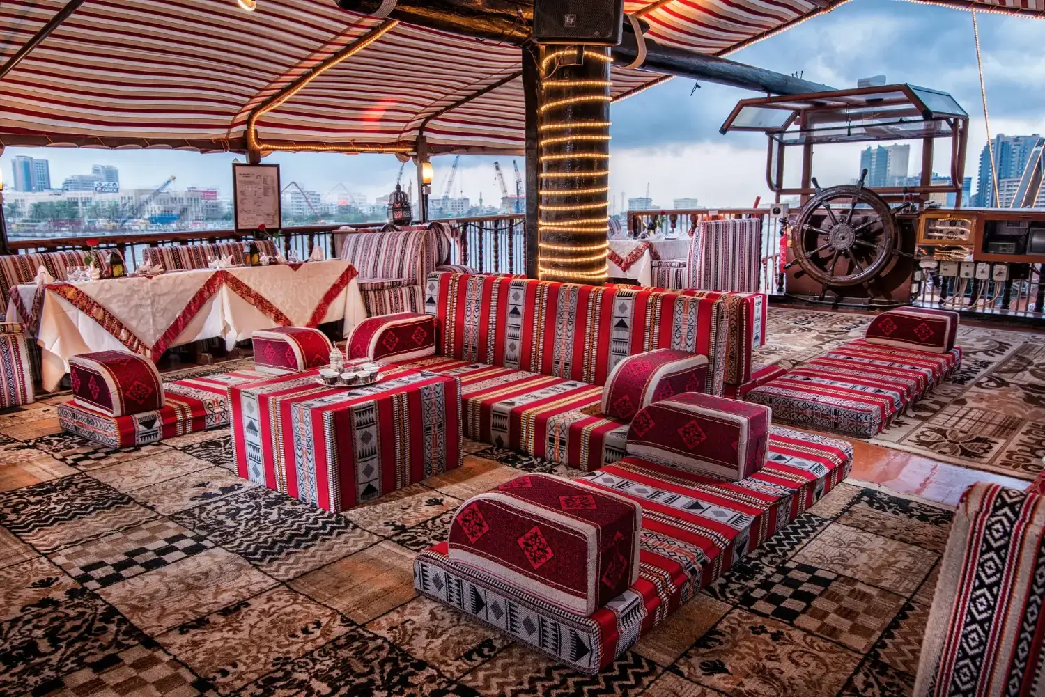 Step aboard the Al Mansour Dhow and slip into a quieter era as you sail along Dubai’s waters. The wooden vessel carries all the familiar touches-warm lighting, classic decor, and a relaxed rhythm that sets the tone for the evening. You’ll enjoy a full-service bar, attentive dining, and music that pairs well with the city views drifting past.