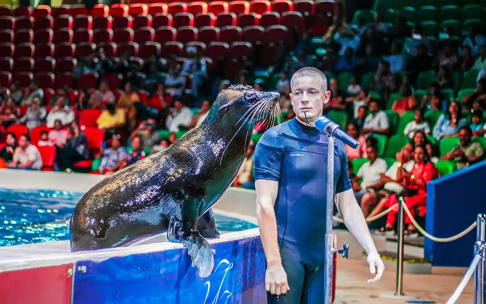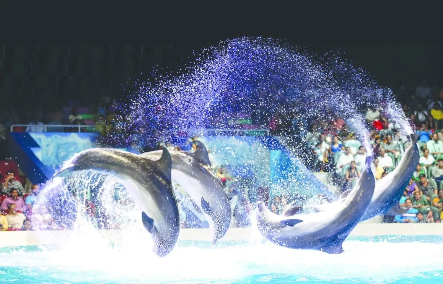 Dubai Dolphinarium delivers a lively indoor show where dolphins and seals take center stage with flips, splashes, and playful moments. Itโ€™s the first venue of its kind in the UAE, giving visitors a chance to watch these marine stars up close inside Creek Park.
